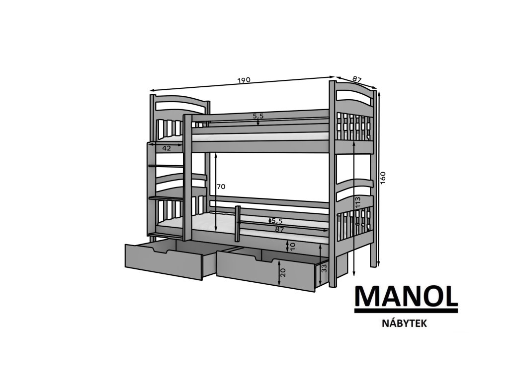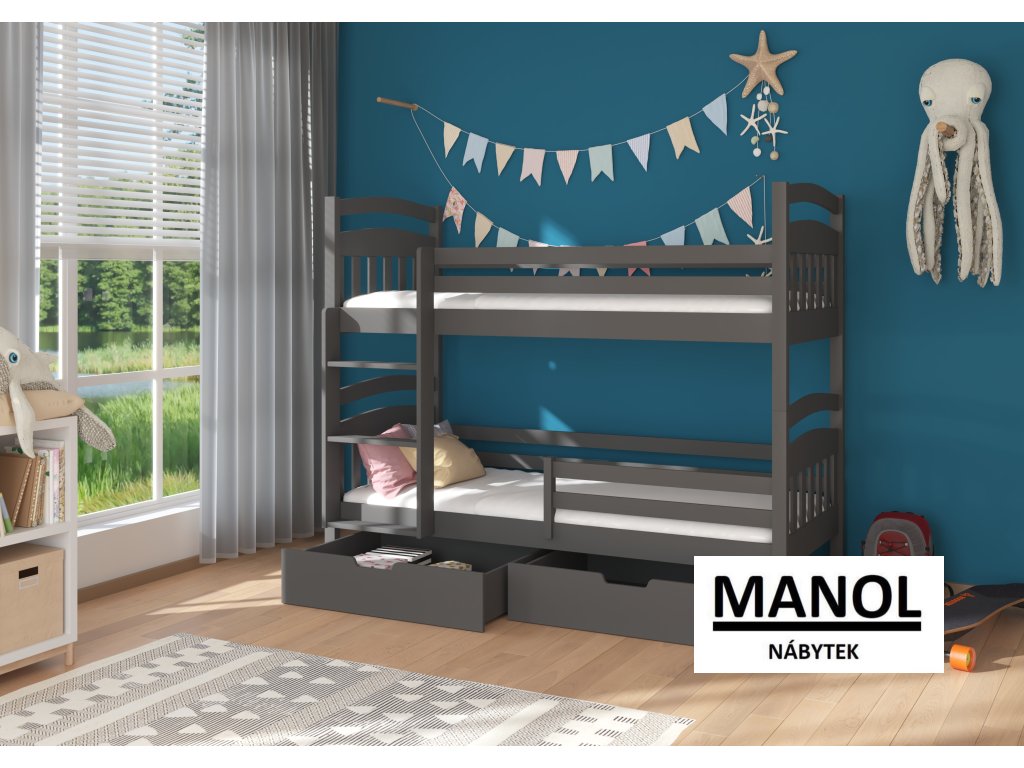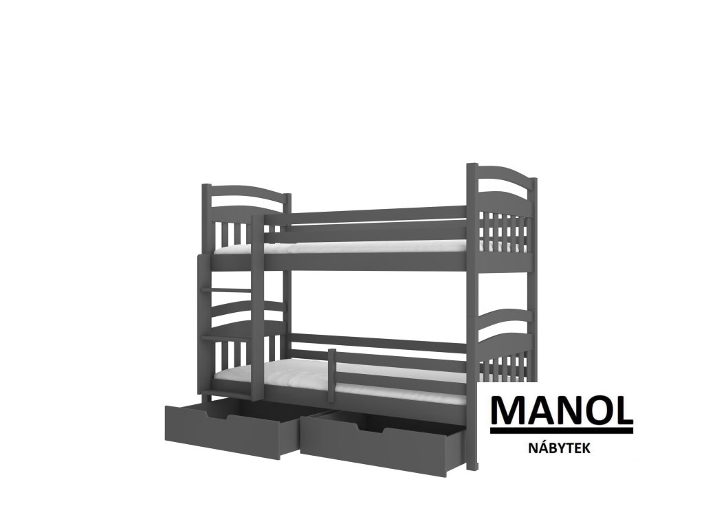 Patrová 2-osobová postel ADA je skvělý nápad na úsporu místa v malém dětském pokoji. Model je k dispozici ve dvou velikostech a v mnoha barvách, které ladí s jakýmkoliv interiérem. Nábytek má schůdkový žebřík a dvě prostorné a funkční zásuvky na lůžkoviny. Spolu s postelí obdržíte sadu pěnových matrací o tloušťce 8 cm.Doplňkové parametry