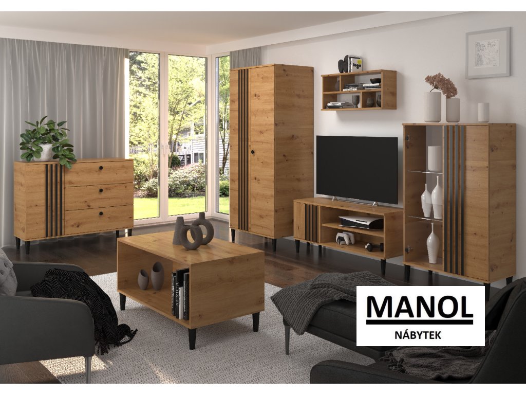 Konferenční stolek z kolekce LIVIA je kus nábytku určený do obývacího pokoje. Přírodní efekt dřeva je zvýrazněn doplňky a vložkami v černé barvě. Udržovaný v moderním stylu jistě upoutá pozornost. Ideálně se bude hodit do minimalistického interiéru. Doporučujeme vám seznámit se s dalšími výrobky z kolekce LIVIA.Doplňkové parametry