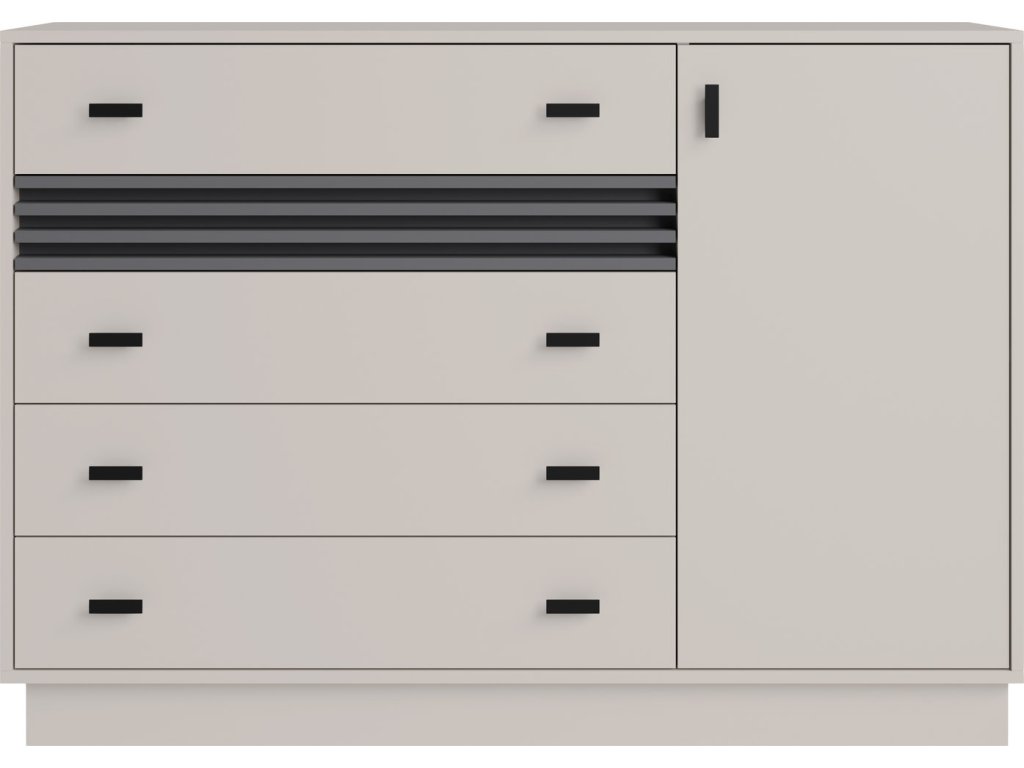 Moderní nábytkový systém Allmo v barvě dub astana antracit se skládá z 20 kusů, které vám umožní zařídit každou místnost vašeho domova. Dekorativní panely dodávají neuvěřitelné kouzlo a styl.