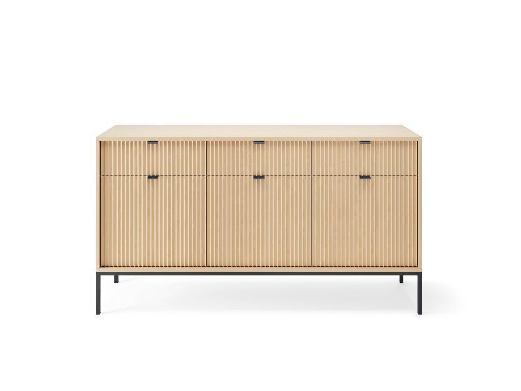 Díky kolekci NOVA si můžete zařídit obývací pokoj, ložnici nebo pracovnu v moderním designu. Nábytek z katalogové řady NOVA je elegantní a nadčasová nabídka do moderních obývacích pokojů. Kolekce se vyznačuje jednoduchými tvary a štíhlými nohami, díky nimž je udržování pořádku mnohem snazší. V závislosti na vašich preferencích je nábytek navržen ve dvou zajímavých dekorech. Volbou v bilých barvách zařídíte pokoj v minimalistickém stylu, černá zase skvěle zapadne do industriálního aranžmá. Zlaté úchytky používané v nábytku dodávají eleganci a prestiž. Dalším charakteristickým znakem nábytku jsou ozdobná drážkovaná čela, která mu dodávají originalitu. K výrobě byly použity nejkvalitnější materiály. U všech korpusů nábytku jsou korpusy a čela vyrobeny z laminované nábytkové desky, která je odolná a odolná proti mechanickému poškození. Hrany jsou zajištěny ABS hranou.