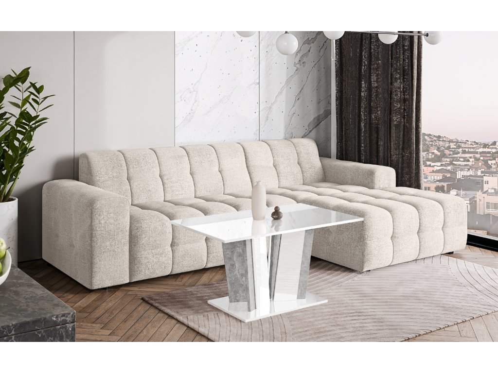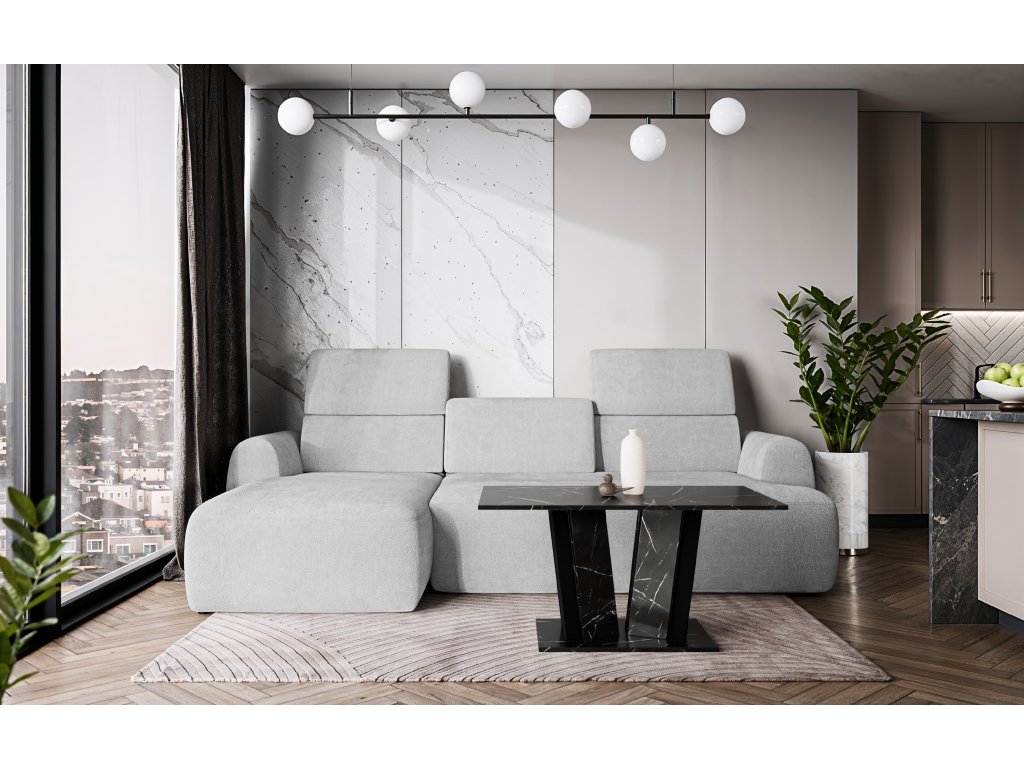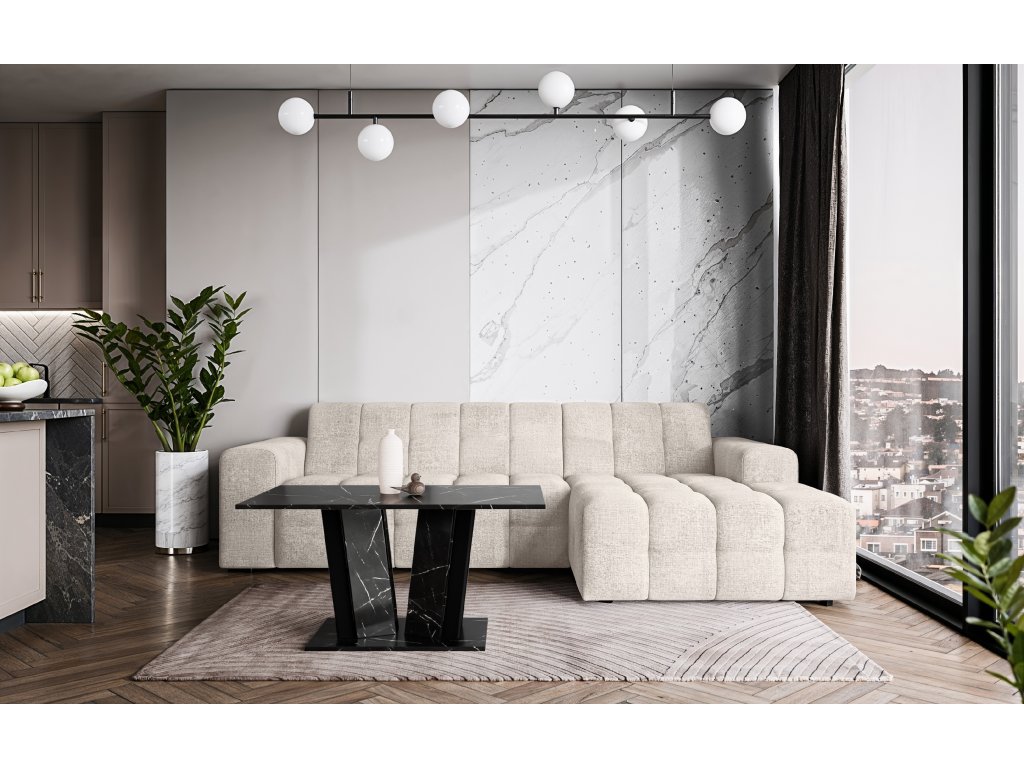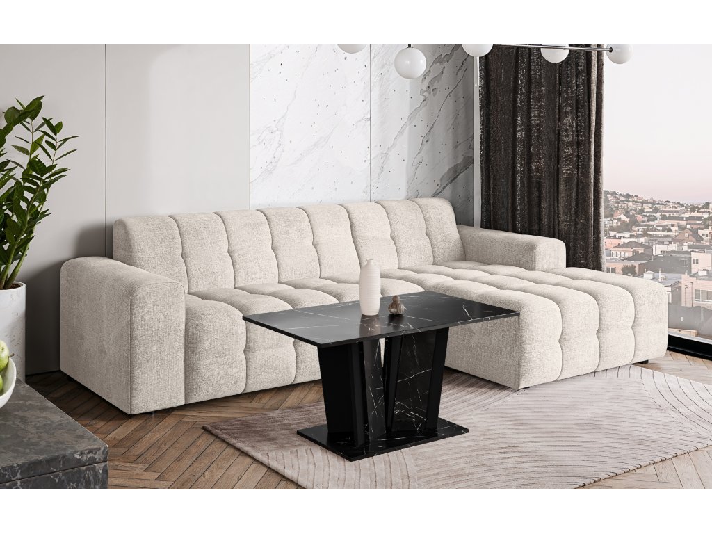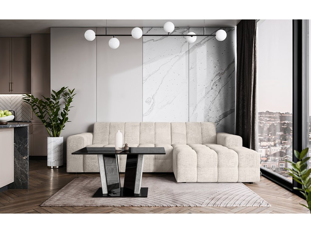 Pevná základna garantuje vysokou stabilitu a dlouhou životnost i při pravidelném zatížení. Moderní kombinace lesklých a kamenných dekorů dodává stolku luxusní vzhled a činí z něj výrazný designový prvek každého obývacího prostoru.