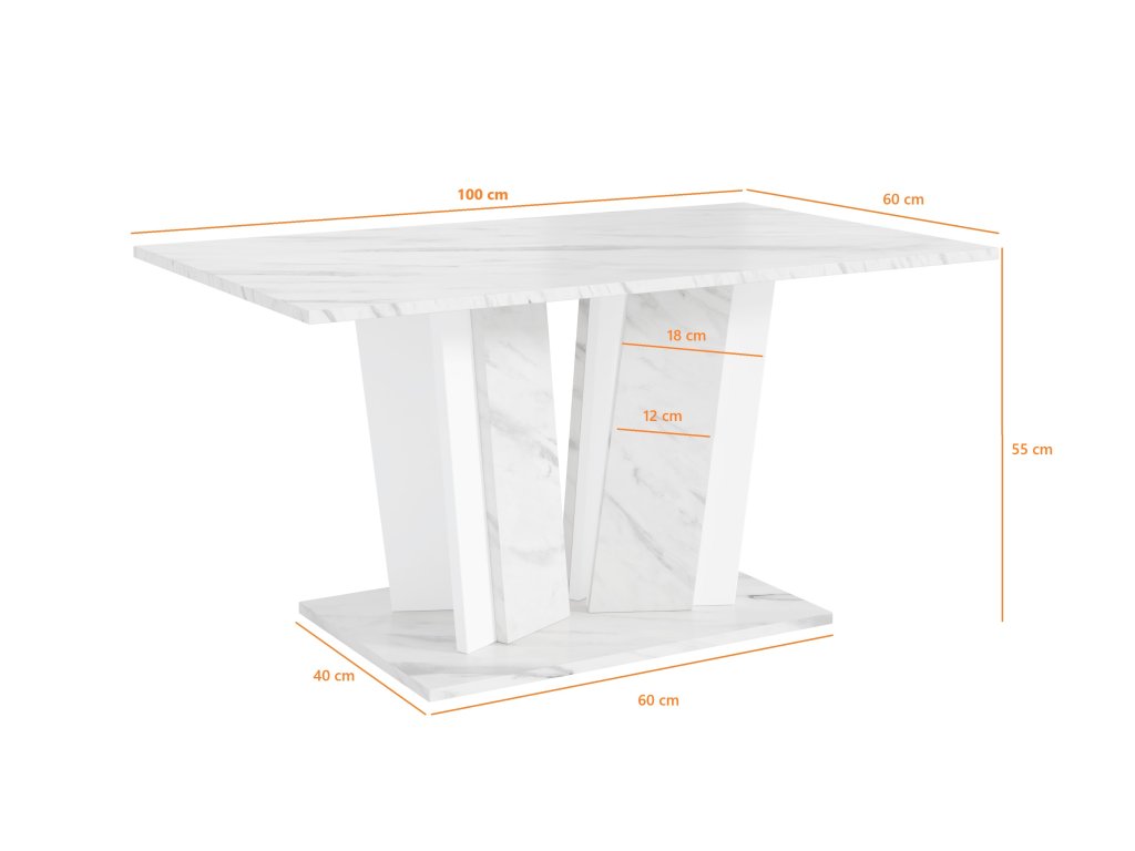 Konferenční stolek nabízí praktickou odkládací plochu o rozměrech 100 × 60 cm, která poskytuje dostatek prostoru pro každodenní použití – od šálků kávy až po dekorace či časopisy. Stabilní konstrukce se středovou podnoží zajišťuje pevnost a komfort při používání bez překážejících rohů nebo nohou.