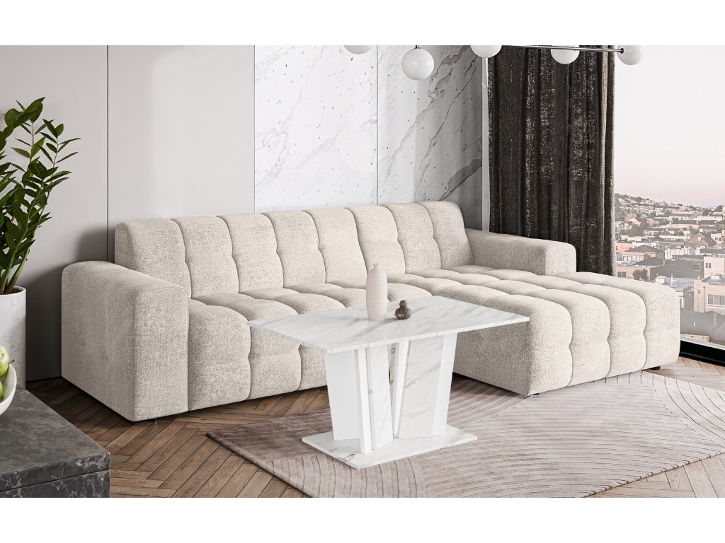 Moderní konferenční stolek s designovou středovou podnoží je ideálním doplňkem do každého současného obývacího pokoje. Díky svému elegantnímu vzhledu v dekoru mramoru nebo lesku se skvěle hodí k moderním sedacím soupravám i minimalistickému interiéru.