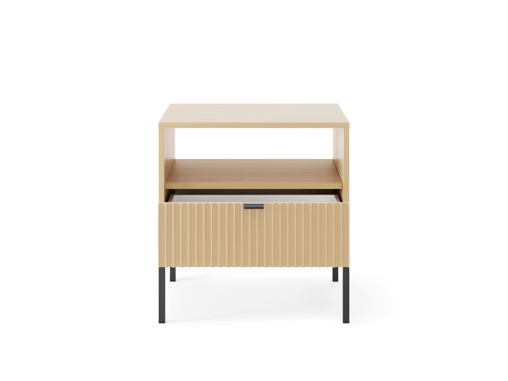 Noční stolek Nova S-54 bílý - má niku a zásuvku.