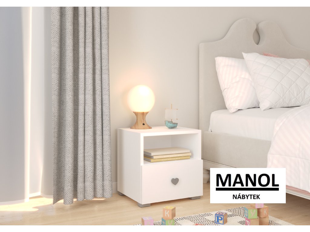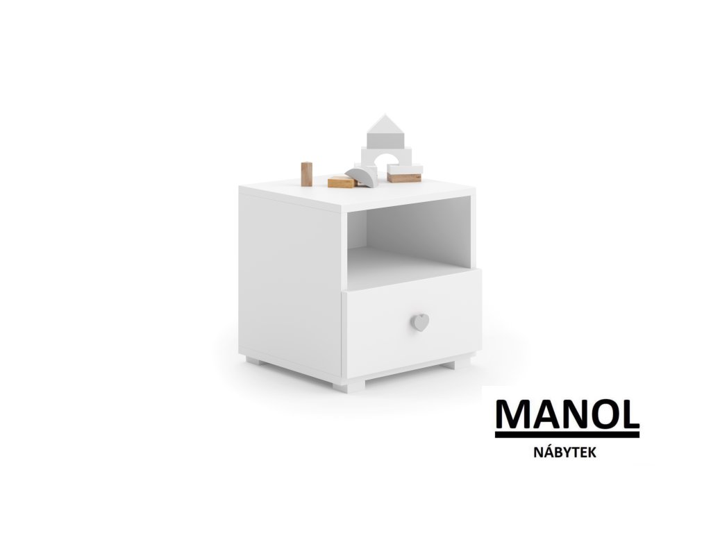 Noční stolek EMI je nábytek určený do ložnice nebo dětského pokoje. Je vybaven prostornou zásuvkou, která je ideálním místem pro uložení drobností. Díky svému modernímu designu se skříňka hodí do každého interiéru.Doplňkové parametry
