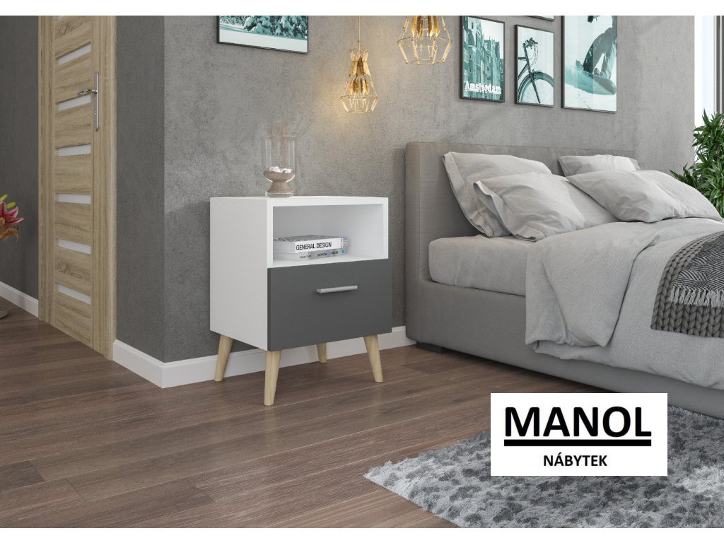 Noční stolek LOGAN je kus nábytku určený do ložnice nebo dětského pokoje. Je vybaven prostornou zásuvkou, která je ideálním místem pro uložení drobných předmětů. Díky svému modernímu designu se skříňka hodí do každého interiéru.Doplňkové parametry