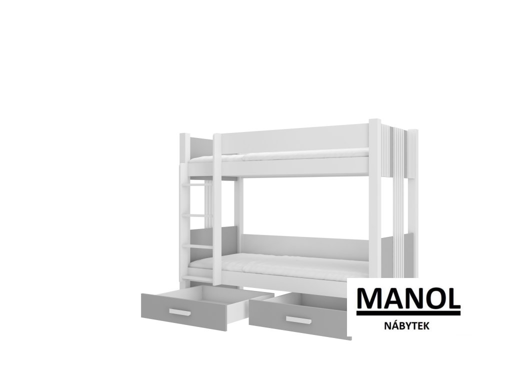 Patrová postel ARTA pro 2 osoby je skvělým nápadem, jak ušetřit místo v malém dětském pokoji. Nábytek má schůdky a dvě prostorné a funkční zásuvky na lůžkoviny. Matrace nejsou součástí postele.Doplňkové parametry