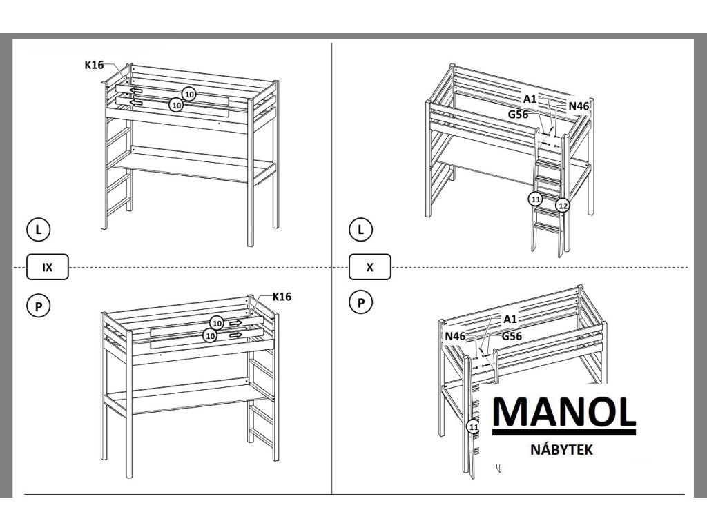 Patrová postel s psacím stolem Niko