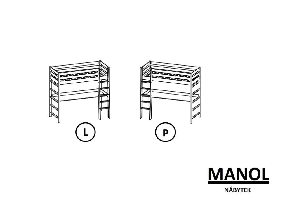 Postel z borovice je možné vyrobit ve dvou barvách - bílá nebo černá, barva konstrukce: přírodní dub