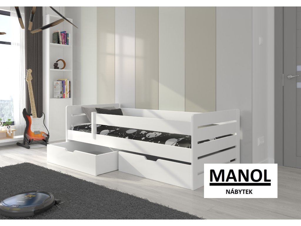 Jednolůžko BEMMA jednoduchého tvaru dokonale zapadne do interiéru chlapeckého nebo dívčího pokoje. Je vybavena zábranou pro bezpečnost během spánku a prostornými a funkčními zásuvkami na lůžkoviny. Součástí sady je také robustní rám z pevných lamel. Matrace není součástí soupravy postele.Doplňkové parametry