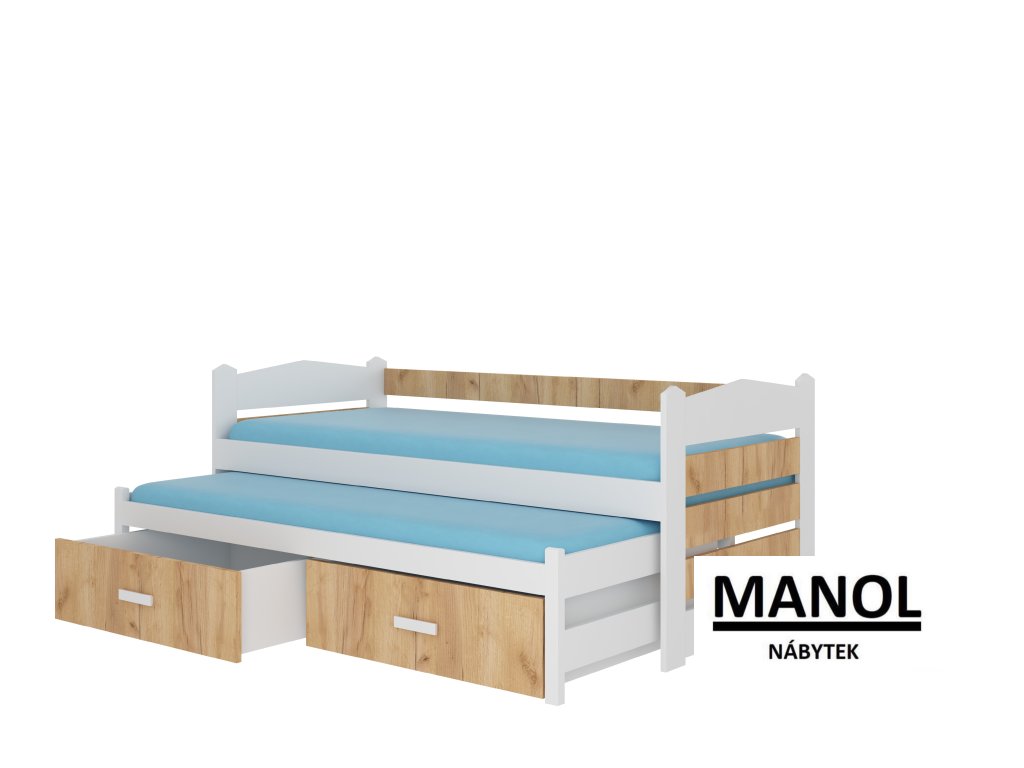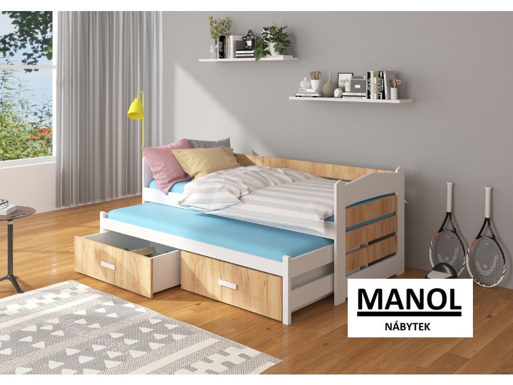 Dvojitá postel TIARRO je ideálním řešením do pokoje pro dva sourozence. Skvěle se hodí také pro případ nečekaných hostů. Model je k dispozici ve dvou velikostech a v mnoha barvách, které ladí s jakýmkoliv interiérem. Postel má dvě praktické a funkční zásuvky na lůžkoviny a pevný, odolný rošt vyrobený z borovicového dřeva. Matrace nejsou součástí sady.Doplňkové parametry