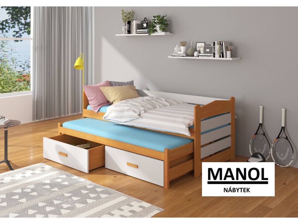 Dvojitá postel TIARRO je ideálním řešením do pokoje pro dva sourozence. Skvěle se hodí také pro případ nečekaných hostů. Model je k dispozici ve dvou velikostech a v mnoha barvách, které ladí s jakýmkoliv interiérem. Postel má dvě praktické a funkční zásuvky na lůžkoviny a pevný, odolný rošt vyrobený z borovicového dřeva. Matrace nejsou součástí sady.Doplňkové parametry