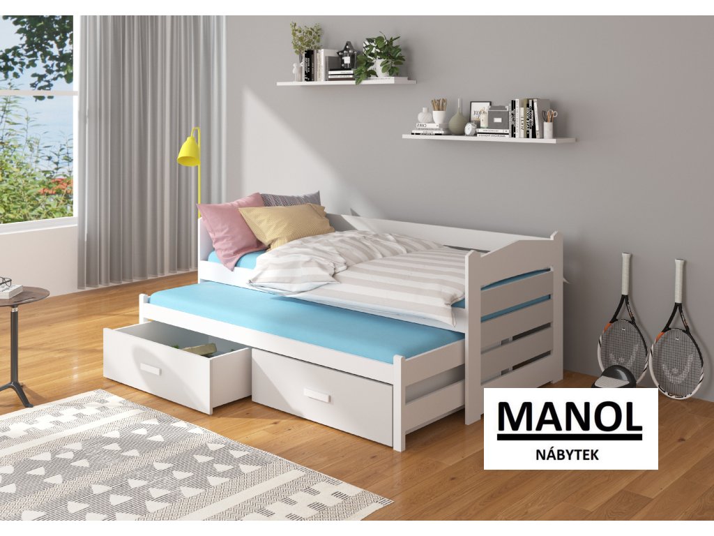 Dvojitá postel TIARRO je ideálním řešením do pokoje pro dva sourozence. Skvěle se hodí také pro případ nečekaných hostů. Model je k dispozici ve dvou velikostech a v mnoha barvách, které ladí s jakýmkoliv interiérem. Postel má dvě praktické a funkční zásuvky na lůžkoviny a pevný, odolný rošt vyrobený z borovicového dřeva. Matrace nejsou součástí sady.Doplňkové parametry
