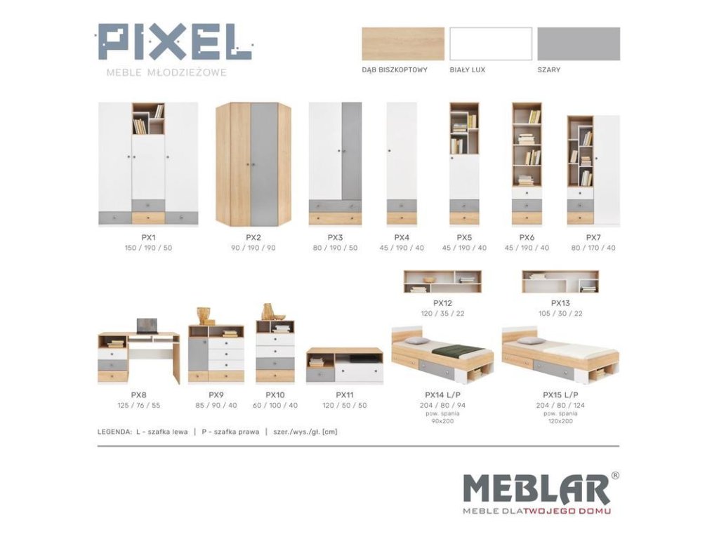 Moderní dětský nábytek PIXEL se skládá z 15 jednotlivých prvků, které lze kombinovat dle Vašich představ. Příjemné barevné provedení k sobě v místnosti hezky ladí a díky barevnému provedení se budete v Dětském pokojíčku cítit příjemně Vy i Vaše děti. Stále více lidí se rozhoduje umístit dětský pokoj do prostor, které nemají mnoho metrů čtverečních. V takových situacích je nesmírně důležité nejen dobře rozmístit zařízení, ale především pořídit nábytek a spotřebiče, které umožňují maximální využití prostoru. Skvělou volbou se ukazuje modulární mládežnický nábytek , jehož konstrukce umožňuje uspořádat všechny školní potřeby, oblečení, hračky a potřebné doplňky každého teenagera . Modulární nábytek může současně fungovat jako nábytek do ložnice i jako vybavení obývacího pokoje.