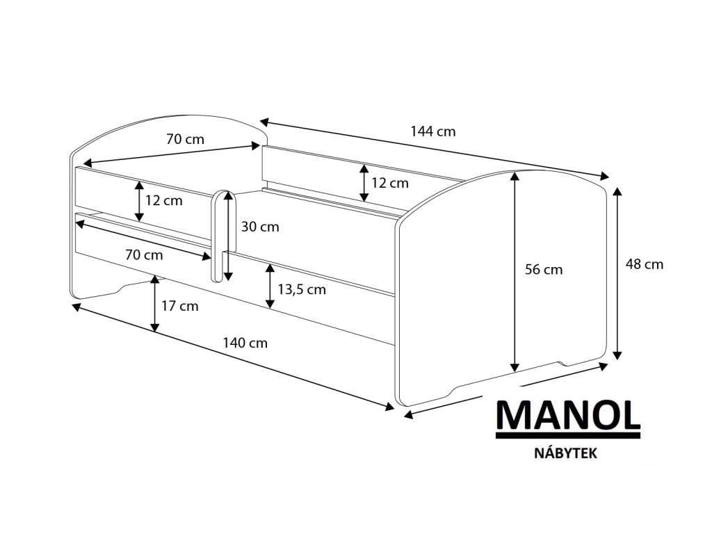 Postel s matrací a zábranou PEPE 140x70 Postel s matrací a zábranou PEPE