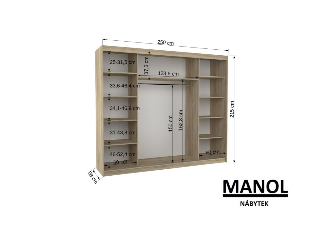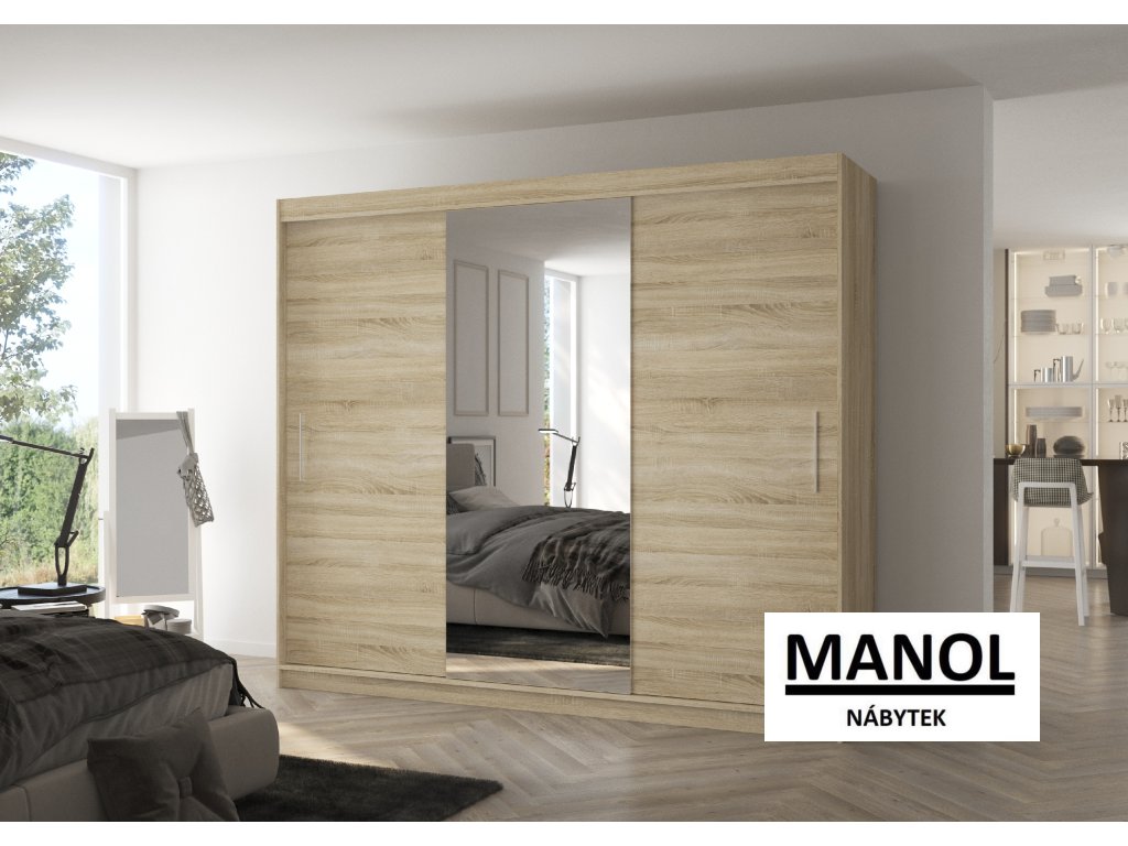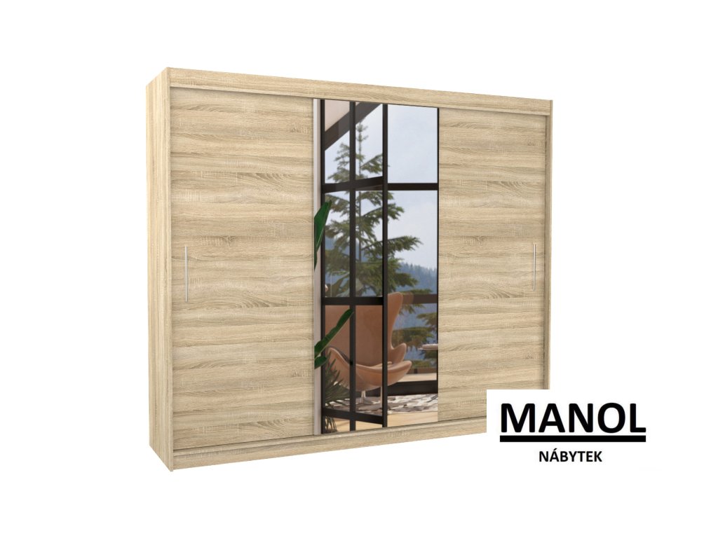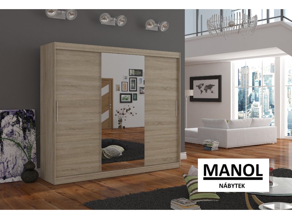 Posuvná šatní skříň DENIS se zrcadlem je ideálním způsobem, jak uspořádat svůj prostor. Nábytek je vybaven prostornými policemi a tyčí, na kterou můžete zavěsit šaty, obleky, svrchní oblečení nebo košile. Na přední straně je připevněno zrcadlo, které opticky zvětšuje prostor. Díky tomu, že je skříň posuvná, nemusíte pro otevírání dveří vyčlenit další prostor, což z ní činí ideální řešení pro malé místnosti nebo úzké chodby.Doplňkové parametry