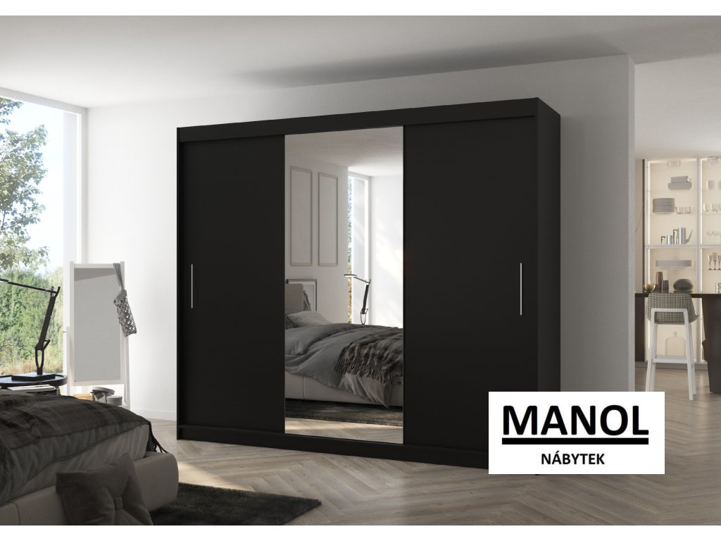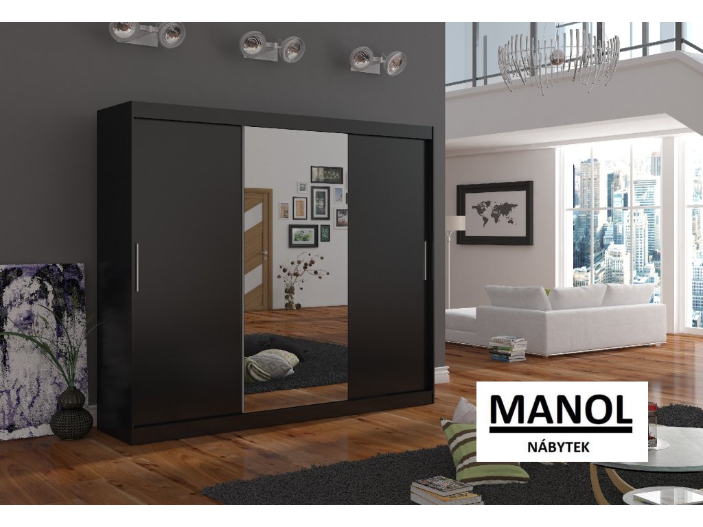 Posuvná šatní skříň DENIS se zrcadlem je ideálním způsobem, jak uspořádat svůj prostor. Nábytek je vybaven prostornými policemi a tyčí, na kterou můžete zavěsit šaty, obleky, svrchní oblečení nebo košile. Na přední straně je připevněno zrcadlo, které opticky zvětšuje prostor. Díky tomu, že je skříň posuvná, nemusíte pro otevírání dveří vyčlenit další prostor, což z ní činí ideální řešení pro malé místnosti nebo úzké chodby.Doplňkové parametry