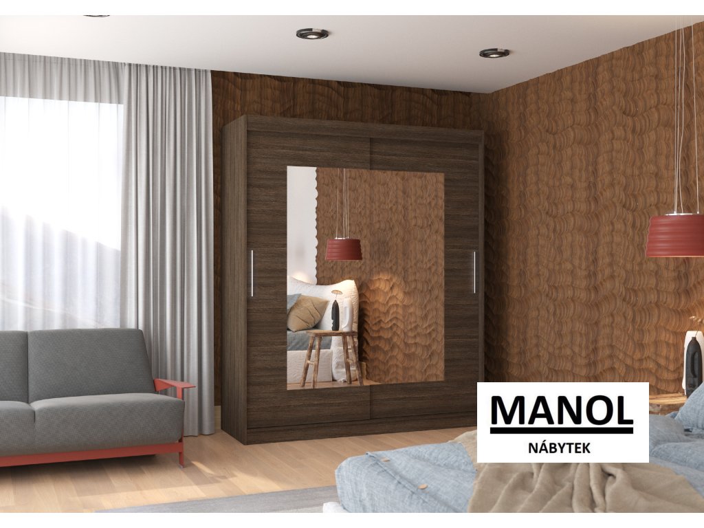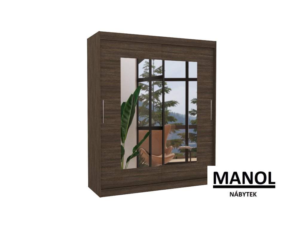 Posuvná šatní skříň ROSETTE se zrcadlem je ideálním způsobem, jak uspořádat svůj prostor. Nábytek je vybaven prostornými policemi a tyčí, na kterou můžete zavěsit šaty, obleky, svrchní oblečení nebo košile. Na přední straně jsou připevněna zrcadla, která opticky zvětšují prostor. Díky tomu, že je skříň posuvná, nemusíte pro otevírání dveří vyčlenit další prostor, což z ní činí ideální řešení pro malé místnosti nebo úzké chodby.Doplňkové parametry