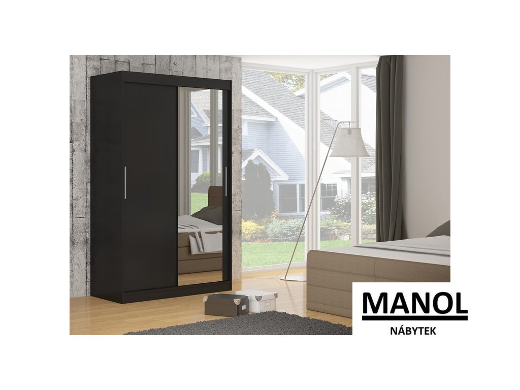 Posuvná šatní skříň TOM se zrcadlem je ideálním způsobem, jak uspořádat svůj prostor. Nábytek je vybaven prostornými policemi a tyčí, na kterou můžete zavěsit šaty, obleky, svrchní oblečení nebo košile. Na přední straně je připevněno zrcadlo, které opticky zvětšuje prostor. Díky tomu, že je skříň posuvná, nemusíte pro otevírání dveří vyčlenit další prostor, což z ní činí ideální řešení pro malé místnosti nebo úzké chodby.Doplňkové parametry