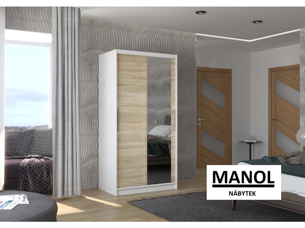 Posuvná šatní skříň BAROS se zrcadlem je ideálním způsobem, jak uspořádat svůj prostor. Nábytek je vybaven prostornými policemi a tyčí, na kterou můžete zavěsit šaty, obleky, svrchní oblečení nebo košile. Na přední straně je připevněno zrcadlo, které opticky zvětšuje prostor. Díky tomu, že je skříň posuvná, nemusíte pro otevírání dveří vyčlenit další prostor, což z ní činí ideální řešení pro malé místnosti nebo úzké chodby.Doplňkové parametry
