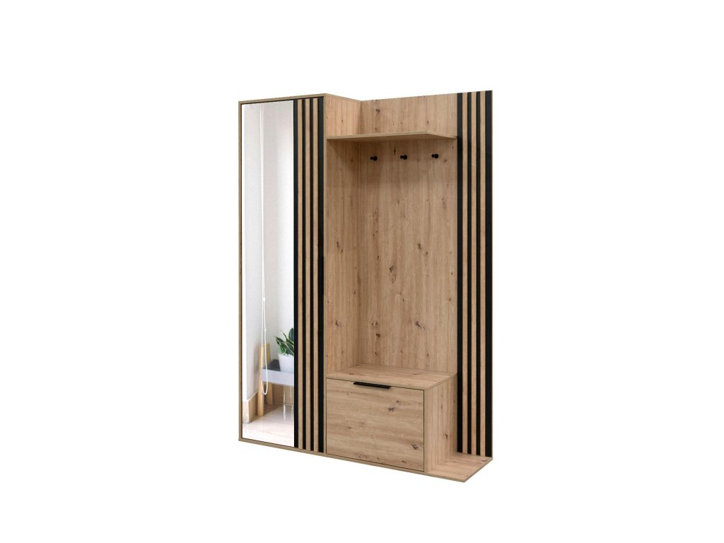 AMBER je moderní předsíňová stěna, která spojuje elegantní vzhled s vysokou funkčností. Díky svému promyšlenému provedení a dekoru Dub Artisan působí teple a příjemně, čímž vytváří ideální první dojem z vašeho domova.