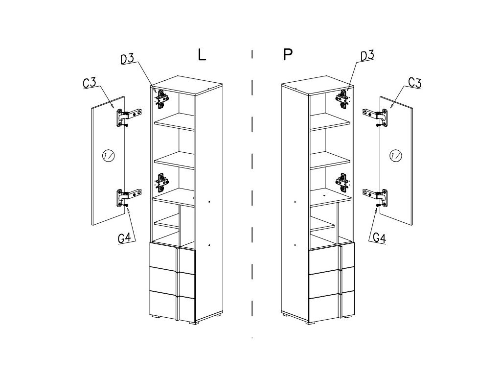 Rozměry : Šířka: 45 cm Výška:: 195 cm Hloubka: 40 cm Barevné provedení : Dub bílý + bílý lux + antracit Další nábytek z této sestavy naleznete :...