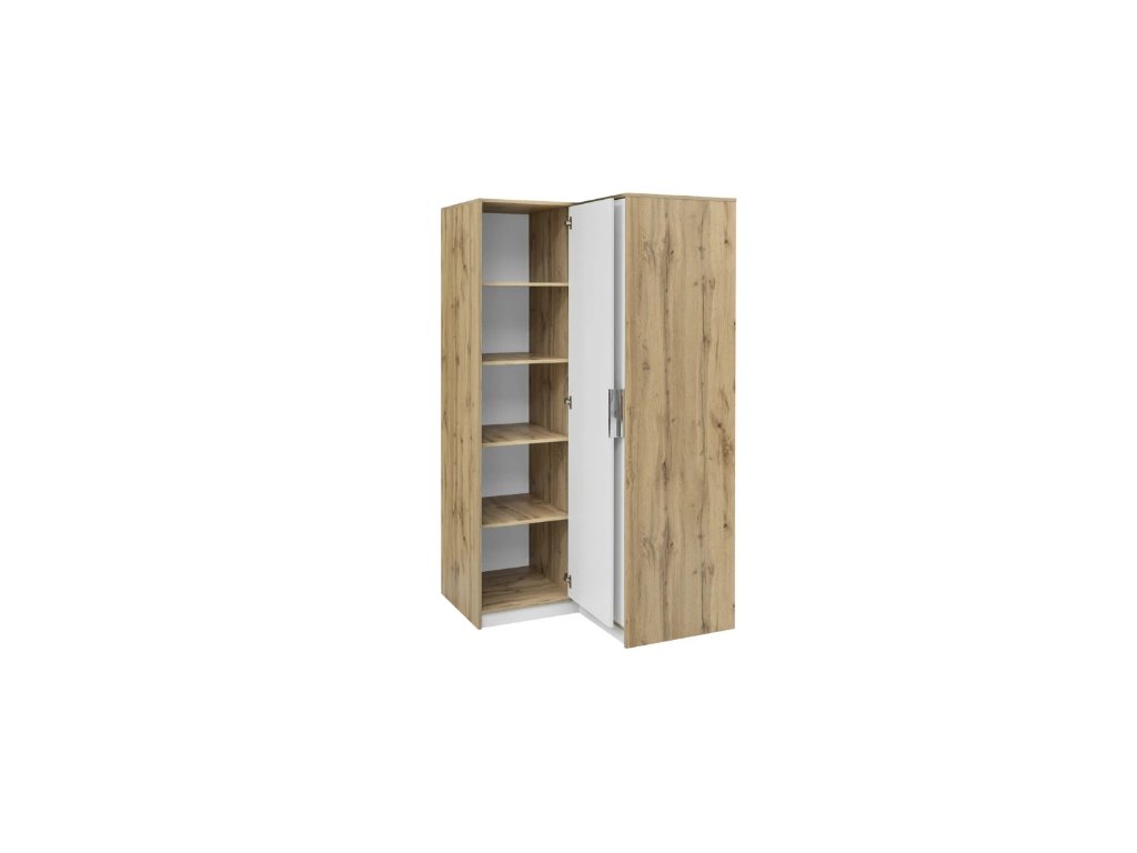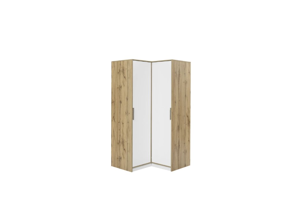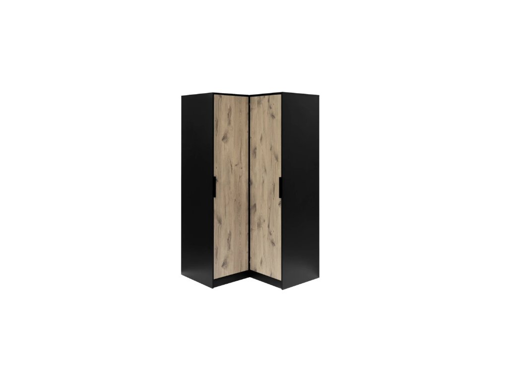 Šatní skříň LATI představuje ideální spojení moderního stylu a praktického využití rohového prostoru. Díky promyšlenému designu a kombinaci dekorů je vhodná do moderně laděných interiérů ložnic, šaten nebo předsíní.