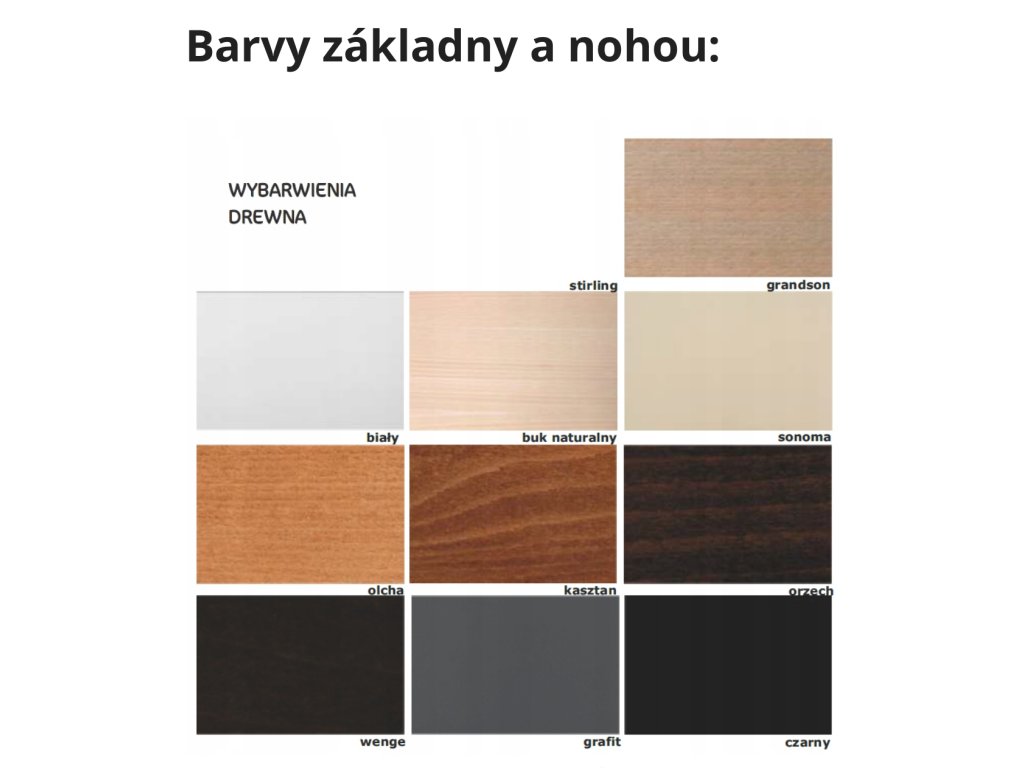 Dostupné barvy základny a nohou: ořech/bílá/sonoma/grafit/grandson/černá/přírodní buk