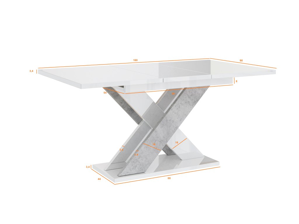 Stůl Xao je mimořádně funkčním prvkem interiérového designu, který dodá místnosti jedinečný charakter. Jedná se o model s jedinečným, jedinečným designem, který se perfektně hodí do jídelny, kuchyně nebo obývacího pokoje. Kolekce nábytku Xao byla vytvořena pro náročného uživatele, který očekává pozornost do nejmenších detailů. Je vybavena funkcí rozkládání a díky dvěma 50 cm vložkám může jeho šířka dosáhnout 160 cm.