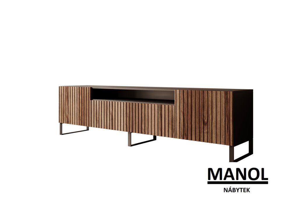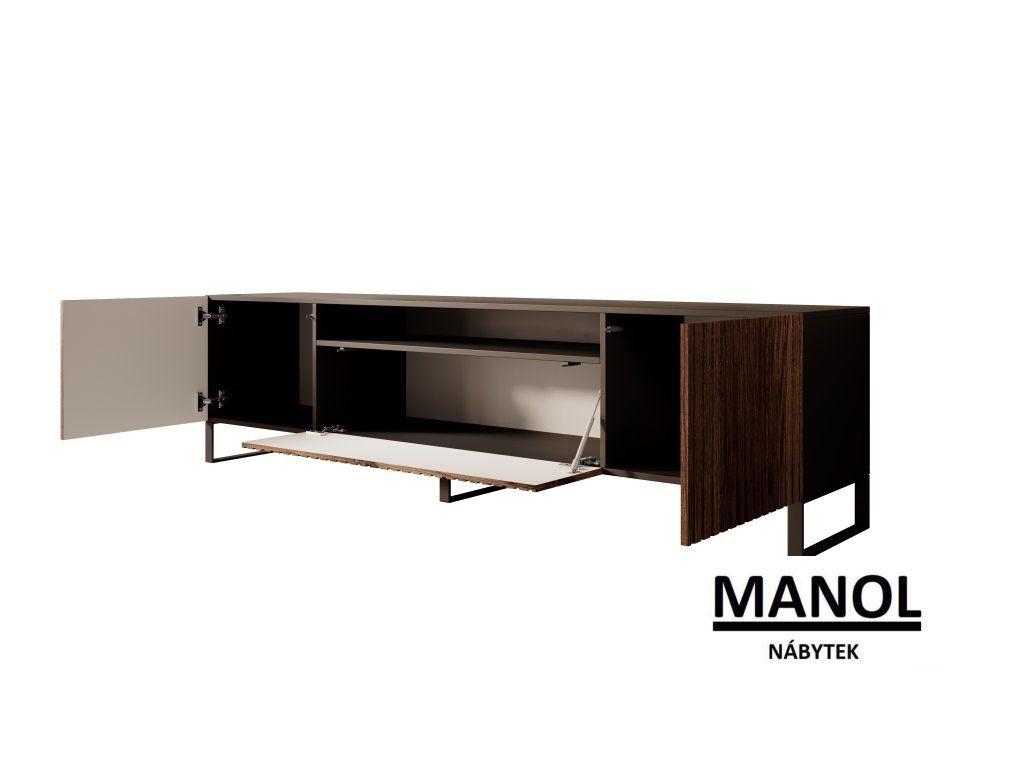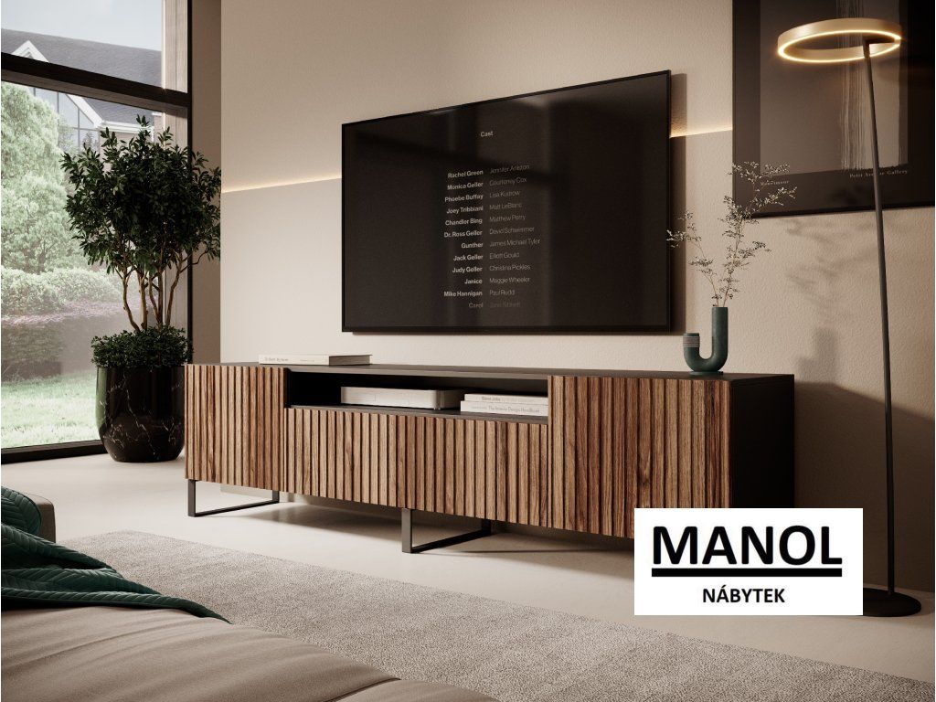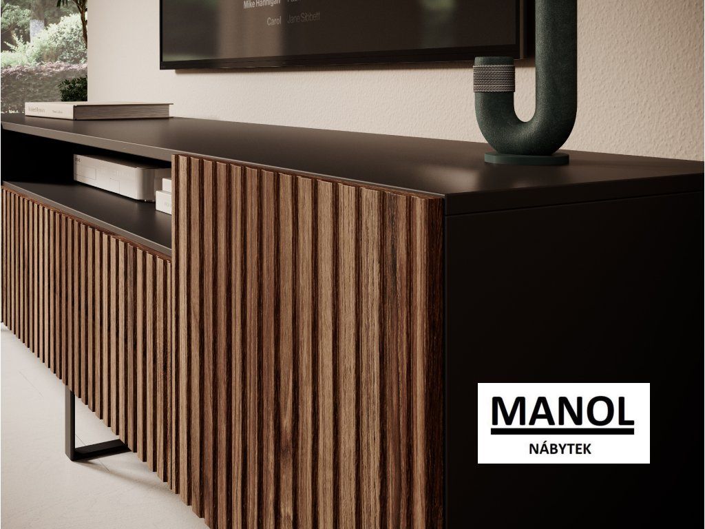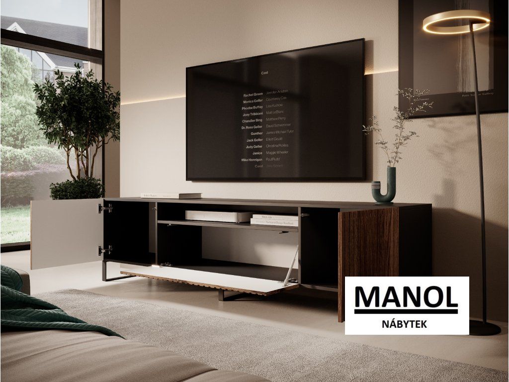 RTV skříňka Miro – moderní řešení pro váš obývací pokoj, které spojuje eleganci s funkčností. Model je dostupný ve dvou barevných variantách: klasické bílé s dekorem katania a stylové černé s dekorem katania, což umožňuje snadné sladění s různými interiérovými styly. RTV skříňka Miro je nabízena ve volně stojící i závěsné verzi, takže ji lze přizpůsobit vašemu prostoru a individuálním preferencím. Vysoce kvalitní materiály, včetně odolné laminované desky, zaručují nejen dlouhou životnost, ale také elegantní vzhled po mnoho let. Skříňka má prostorné police a praktické přihrádky, které pojmou veškerou RTV techniku a doplňky, čímž zajistí pořádek a snadný přístup k potřebným zařízením. RTV Miro je ideální volbou pro ty, kteří si cení stylu a pohodlí.Doplňkové parametry