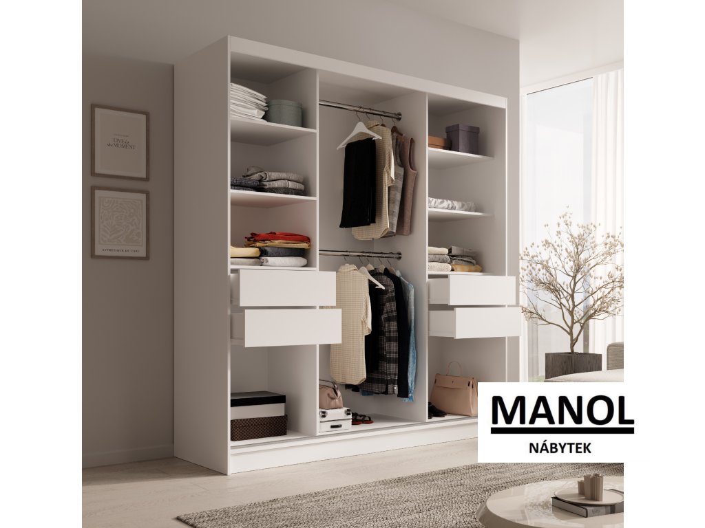 Posuvná skříň Keri je ideálním řešením pro ty, kteří oceňují praktičnost a estetiku. Díky promyšlené konstrukci snadno pojme všechny potřebné věci, zatímco zároveň dodá interiéru moderní vzhled. Se skříní Keri bude váš prostor lépe organizovaný a stylový. Je to dokonalá kombinace elegance a funkčnosti v jednom nábytku. Skvěle se hodí do ložnice, předsíně i šatny. Doplňte svůj interiér o skříň Keri a užívejte si dokonale uspořádaný prostor!Doplňkové parametry