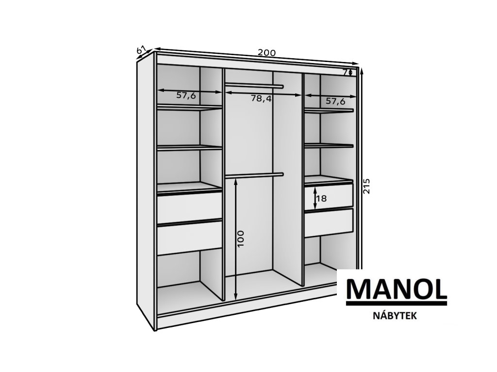 Šatní skříň s posuvnými dveřmi Keri 200 Šatní skříň s posuvnými dveřmi Keri 200