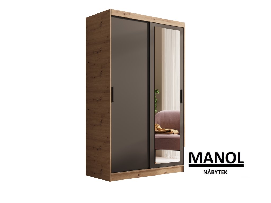 Posuvná skříň Hailey je ideálním řešením pro ty, kteří oceňují moderní design a praktická řešení. Díky jednoduchému tvaru a minimalistickému vzhledu se perfektně hodí do jakéhokoli interiéru, dodává mu eleganci a pocit prostornosti. Zrcadlové dveře nejenže dodávají skříni stylový charakter, ale také opticky zvětšují místnost, ve které se nachází. Skříň Hailey je dostupná ve čtyřech velikostech: 100 cm, 120 cm, 160 cm a 180 cm, což umožňuje její dokonalé přizpůsobení každému prostoru – od útulné ložnice až po prostornou předsíň. Vnitřní uspořádání skříně bylo navrženo s důrazem na maximální funkčnost, nabízí prostor pro zavěšené oblečení i police na složené části šatníku. Investujte do skříně Hailey a vneste do svého domova harmonii, styl a pořádek.Doplňkové parametry