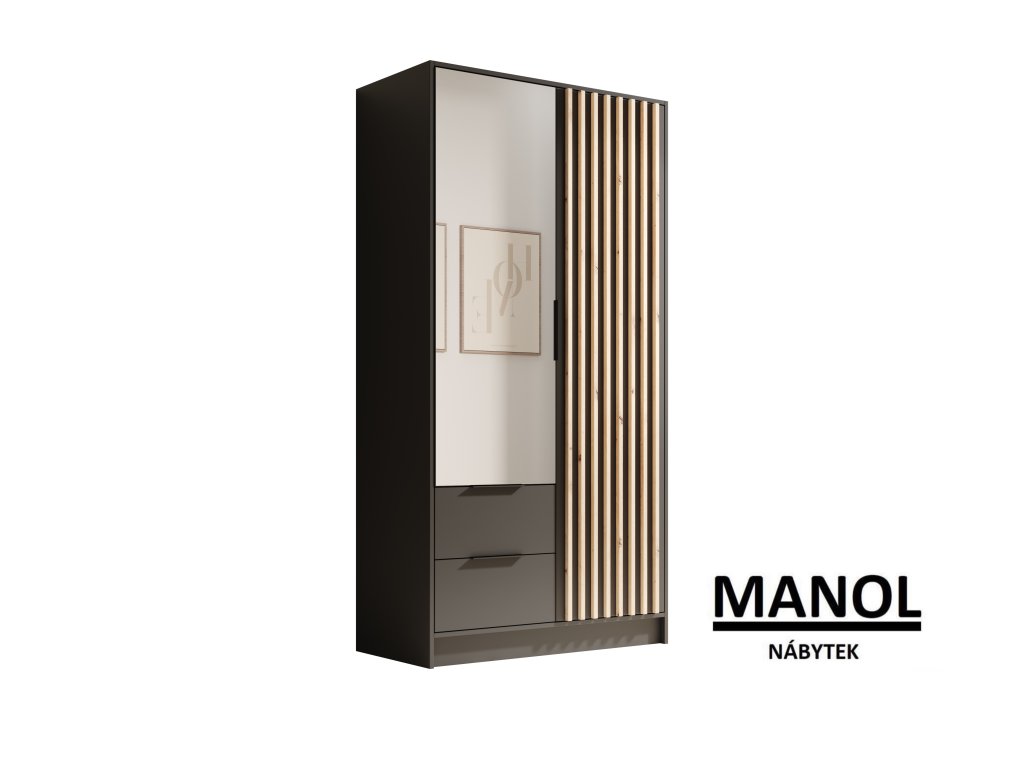 Otevírací skříň Neri – elegantní a funkční skříň, která skvěle zapadne do moderních i klasických interiérů. Díky široké škále barevných variant si každý najde verzi dokonale odpovídající svému stylu. Skříň Neri se vyznačuje dekorativními lamelami na předních plochách a velkým zrcadlem, které opticky zvětší prostor a dodá mu lehkost. Skříň je dostupná ve třech praktických velikostech: 100 cm – kompaktní, ideální do menších místností, 150 cm – skvělý kompromis mezi prostorem a velikostí, 200 cm – prostorná varianta, ideální pro uložení většího šatníku. Každá verze byla navržena s důrazem na pohodlí užívání i estetiku, která obohatí každou ložnici nebo šatnu.Doplňkové parametry