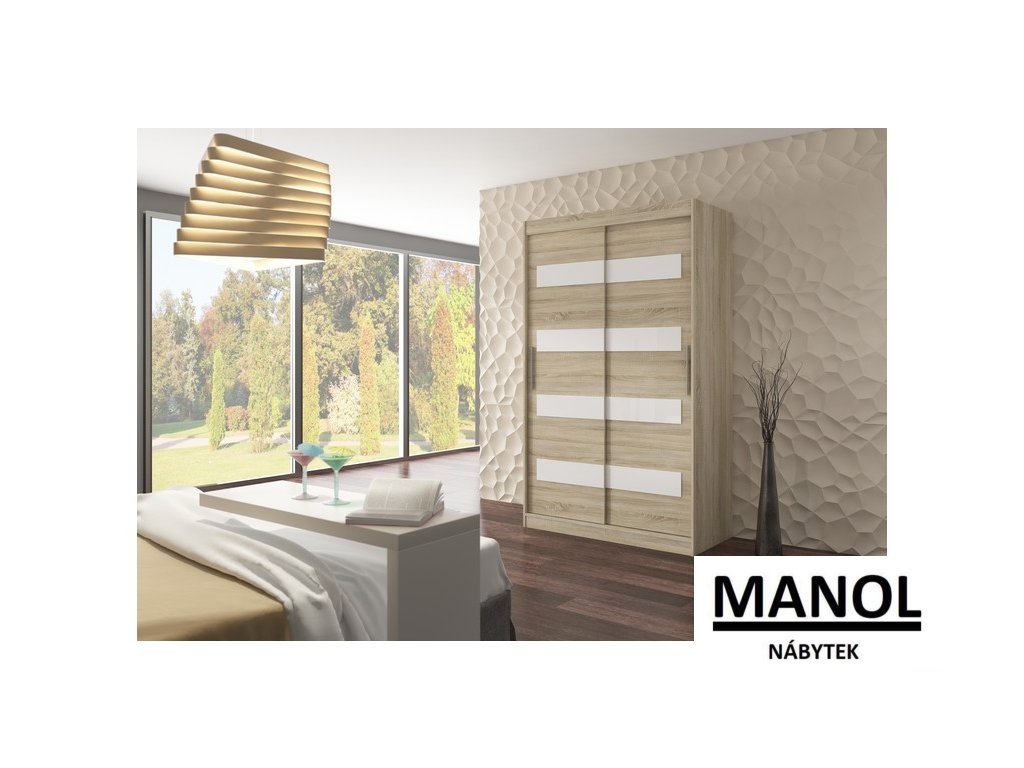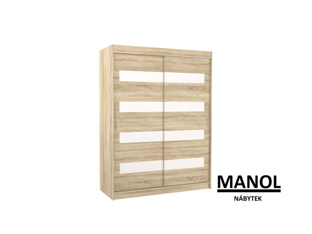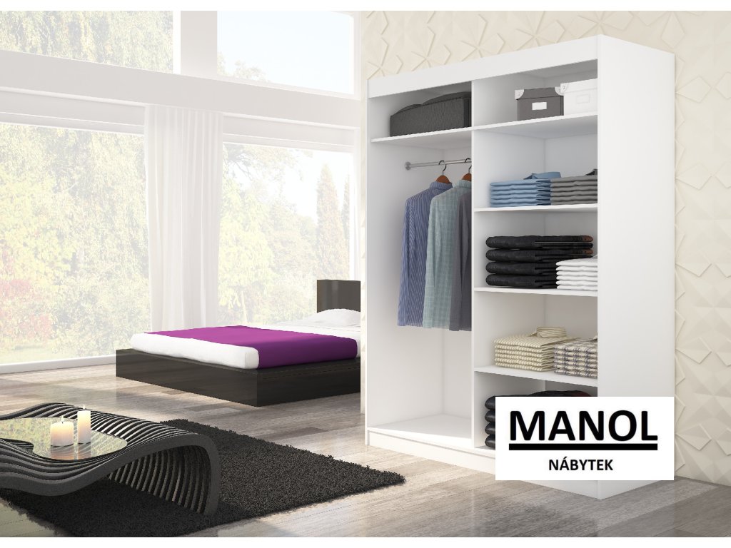 Posuvná skříň od společnosti MARTINEZ je ideálním způsobem, jak uspořádat svůj prostor. Nábytek je vybaven prostornými policemi a tyčí, na kterou můžete zavěsit šaty, obleky, svrchní oblečení nebo košile. Na přední straně se nacházejí ozdobné lacobely, které dodávají nábytku jedinečný styl. Díky tomu, že je skříň posuvná, nemusíte pro otevírání dveří vyčlenit další prostor, což z ní dělá ideální řešení do malého pokoje nebo úzké chodby.Doplňkové parametry