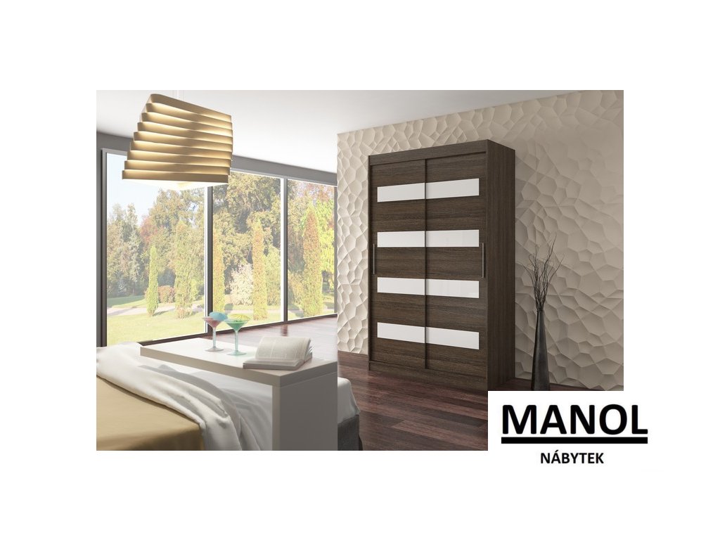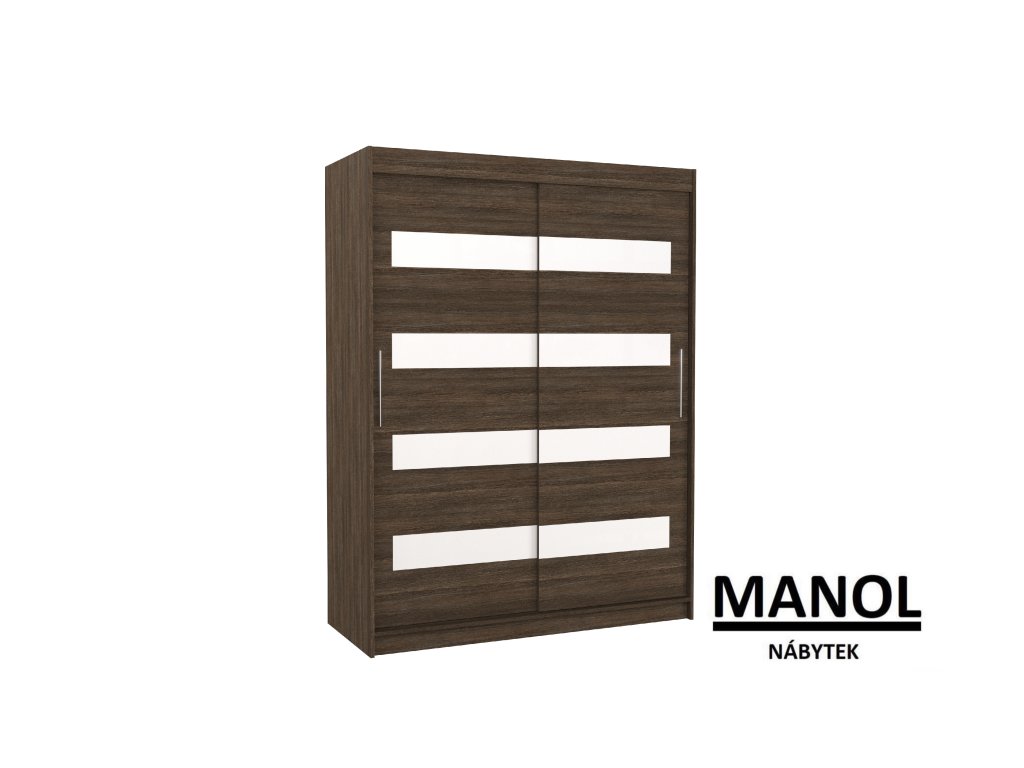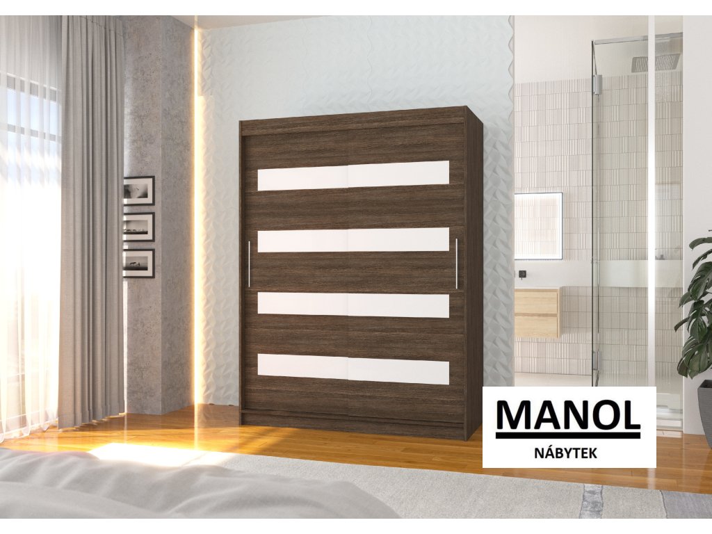 Posuvná skříň od společnosti MARTINEZ je ideálním způsobem, jak uspořádat svůj prostor. Nábytek je vybaven prostornými policemi a tyčí, na kterou můžete zavěsit šaty, obleky, svrchní oblečení nebo košile. Na přední straně se nacházejí ozdobné lacobely, které dodávají nábytku jedinečný styl. Díky tomu, že je skříň posuvná, nemusíte pro otevírání dveří vyčlenit další prostor, což z ní dělá ideální řešení do malého pokoje nebo úzké chodby.Doplňkové parametry