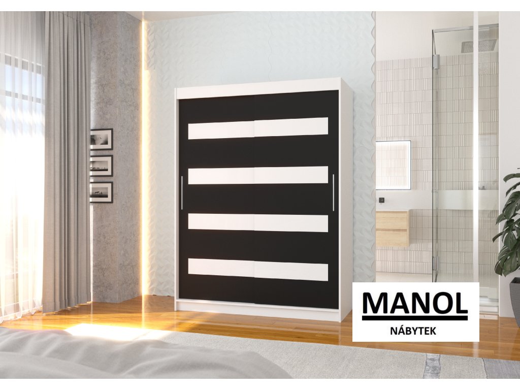 Posuvná skříň od společnosti MARTINEZ je ideálním způsobem, jak uspořádat svůj prostor. Nábytek je vybaven prostornými policemi a tyčí, na kterou můžete zavěsit šaty, obleky, svrchní oblečení nebo košile. Na přední straně se nacházejí ozdobné lacobely, které dodávají nábytku jedinečný styl. Díky tomu, že je skříň posuvná, nemusíte pro otevírání dveří vyčlenit další prostor, což z ní dělá ideální řešení do malého pokoje nebo úzké chodby.Doplňkové parametry