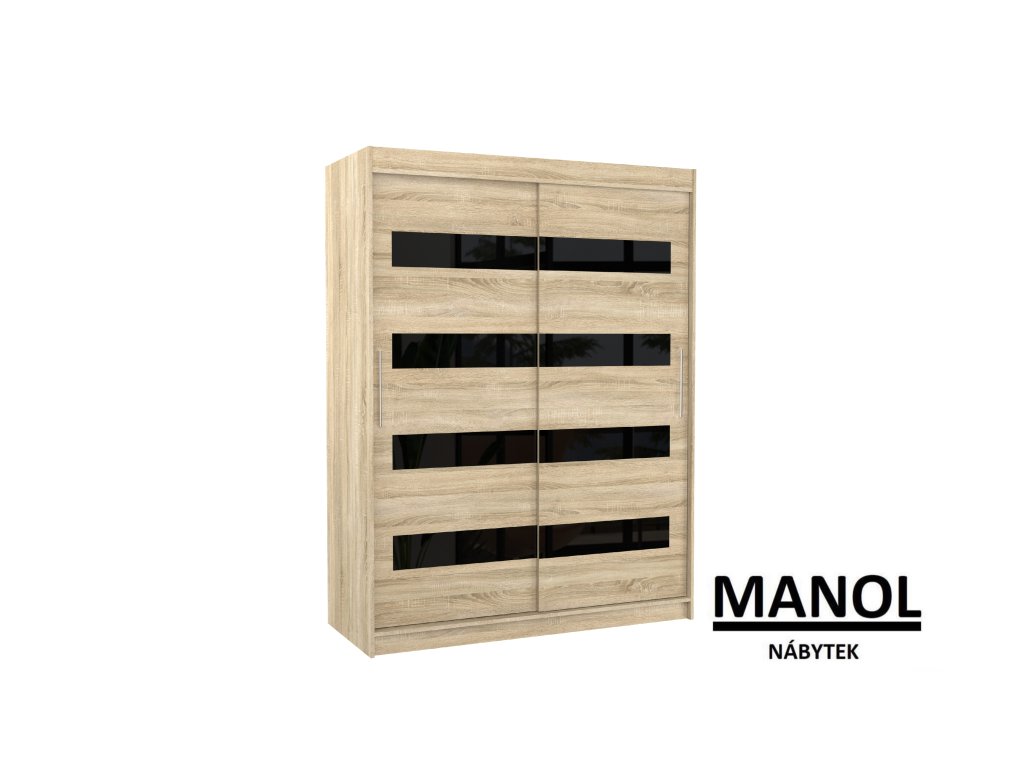 Posuvná skříň od společnosti MARTINEZ je ideálním způsobem, jak uspořádat svůj prostor. Nábytek je vybaven prostornými policemi a tyčí, na kterou můžete zavěsit šaty, obleky, svrchní oblečení nebo košile. Na přední straně se nacházejí ozdobné lacobely, které dodávají nábytku jedinečný styl. Díky tomu, že je skříň posuvná, nemusíte pro otevírání dveří vyčlenit další prostor, což z ní dělá ideální řešení do malého pokoje nebo úzké chodby.Doplňkové parametry