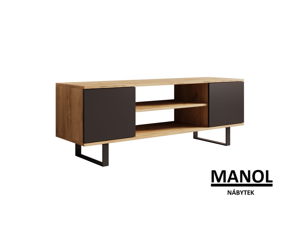 Skříňka RTV Lofter je kombinací moderního stylu a nadčasové elegance. Její pevná konstrukce, založená na černých kovových nohou, dodává nábytku industriální charakter, ideální pro moderní interiéry. Korpus a čela v barvě dub craft vnášejí do místnosti teplo a přirozený akcent, skvěle se hodí do různých aranžmá.Skříňka nabízí promyšlený prostor pro ukládání: otevřené police jsou ideální pro TV vybavení, dekodéry nebo herní konzole, a uzavřené skříňky poskytnou místo pro kabely, příslušenství nebo jiné drobnosti. Díky své funkčnosti a estetice, Lofter nejen podtrhne charakter obývacího pokoje, ale také usnadní organizaci domácího zábavního centra.Je to vynikající volba pro milovníky loftového stylu, kteří oceňují praktičnost a jedinečný design!Doplňkové parametry