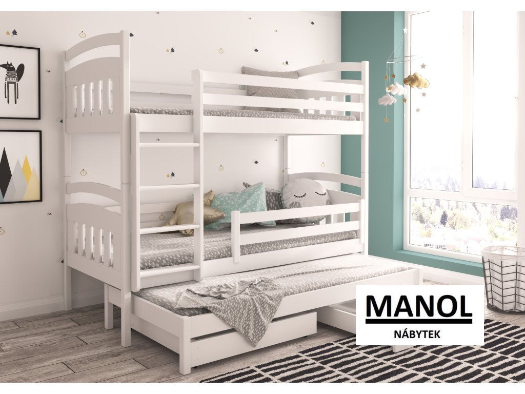 Třípatrová postel pro tři osoby s matracemi ALDO 180x80 Třípatrová postel pro tři osoby ALDO