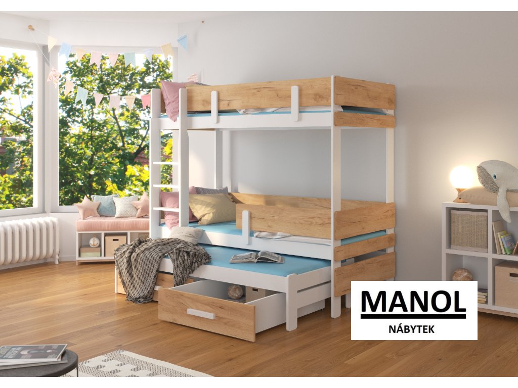 Třípatrová postel pro tři osoby s matracemi ETAPO 180x80 Třípatrová postel pro tři osoby ETAPO