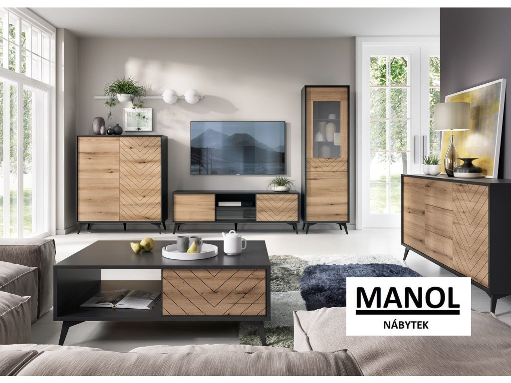 Kolekce nábytku DIAMOND si jistě najde příznivce, kteří mají rádi prostornost a využitelnost místnosti. Pokud si ceníte nejnovějších trendů, kolekce DIAMOND splní vaše očekávání. Nábytek z katalogové řady DIAMOND je elegantní a nadčasový do moderních obývacích pokojů v loftovém nebo minimalistickém stylu. Kolekce se vyznačuje jednoduchými tvary a štíhlými nohami, díky nimž je udržování pořádku mnohem snazší. Vrcholem celku jsou frézy na čelech připomínající imitaci rybí kosti. Střídání sytě černé barvy a dřeva v odstínu Dub Evoke vytváří na čelech jedinečný kontrast. Nábytek byl vyroben z nejkvalitnější laminované nábytkové desky.