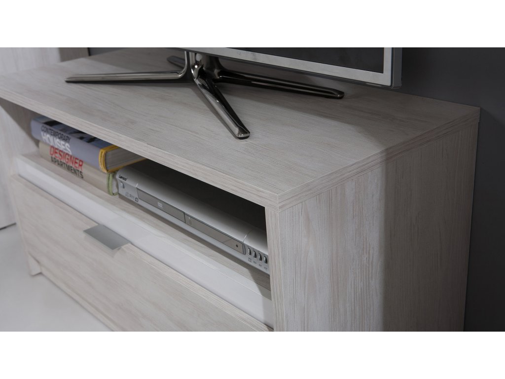 Kovové úchytky v nábytkových skříňkách a zásuvkách se vyznačují vysokou odolností a pevností. Volitelné osvětlení se vztahuje i na skříň, posuvné skříně a univerzální vitrínu.
